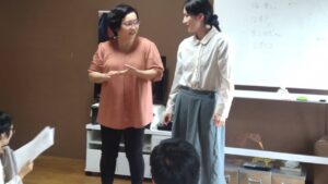 お笑い塾では授業の最後に、毎回ネタ見せを行っています。