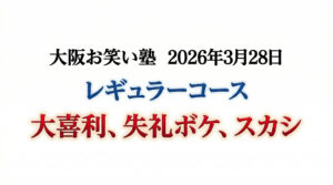 こんにちは。大阪お笑い塾です。新年度になりましたが、いかがお過ごしでしょうか。 4月4日の午前にビギナーコース・ライトの授業が行われましたので、そちらの模様をお伝えいたします! まず、思ったこ […]