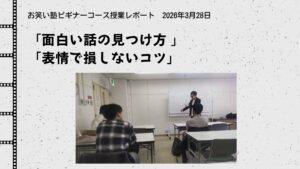 2026年4月4日ビギナーコース・ライト授業レポート「エピソードトークのブラッシュアップ」新着!!
